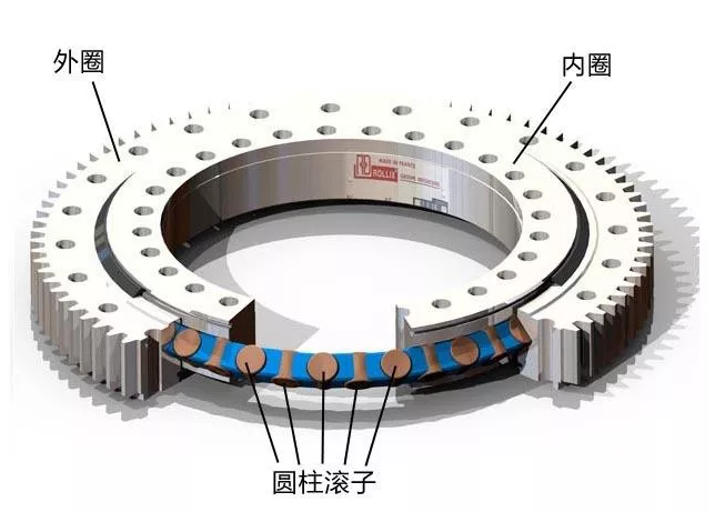 交叉滾子軸承內(nèi)部結(jié)構(gòu)采用滾子呈90°相互垂直交叉排列,滾子之間裝有間隔保持器或者隔離塊,可以防止?jié)L子的傾斜貨滾子之間相互磨察,有效防止了旋轉(zhuǎn)扭矩的增加。另外,不會(huì)發(fā)生滾子的一方接觸現(xiàn)象或者鎖死現(xiàn)象;非標(biāo)準(zhǔn)交叉滾子軸承,同時(shí)因?yàn)閮?nèi)外環(huán)是分割的結(jié)構(gòu),間隙可以調(diào)整,即使被施加預(yù)壓,也能獲得高精度的旋轉(zhuǎn)運(yùn)動(dòng)。